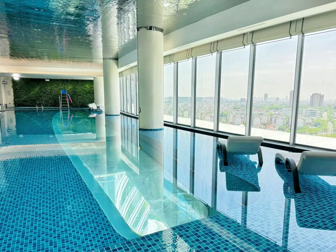 “抬頭仰望是天空,低頭俯瞰皆是江南美景”。說到這座高達(dá)43.95米的透明懸空泳池,它擁有整個酒店巨佳的觀景視角。