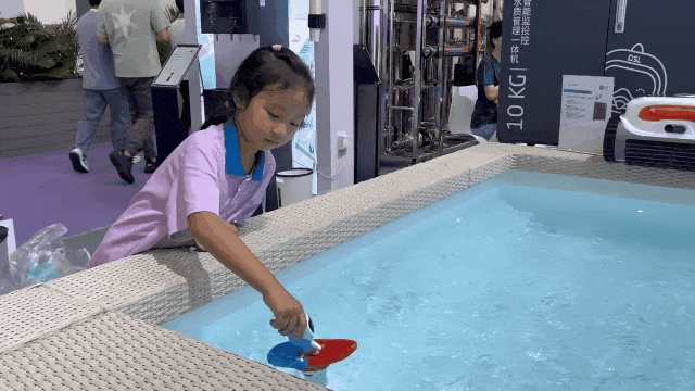 展位上,戲水魔方水面上漂浮的“小樂投藥器”特別受到了參展小朋友的喜愛,它不僅是增添趣味的外觀裝飾,更是一款實用性巨強的水質(zhì)清潔守護者,確保水質(zhì)的持續(xù)清潔與健康。