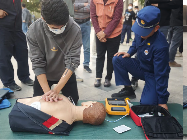 現(xiàn)場演示了心肺復(fù)蘇(CPR)的步驟和技巧,強調(diào)了“快速、準確、連續(xù)”的操作原則。員工們在消防官兵的指導(dǎo)下,紛紛上手實踐,掌握了這項關(guān)鍵時刻能挽救生命的急救技能。