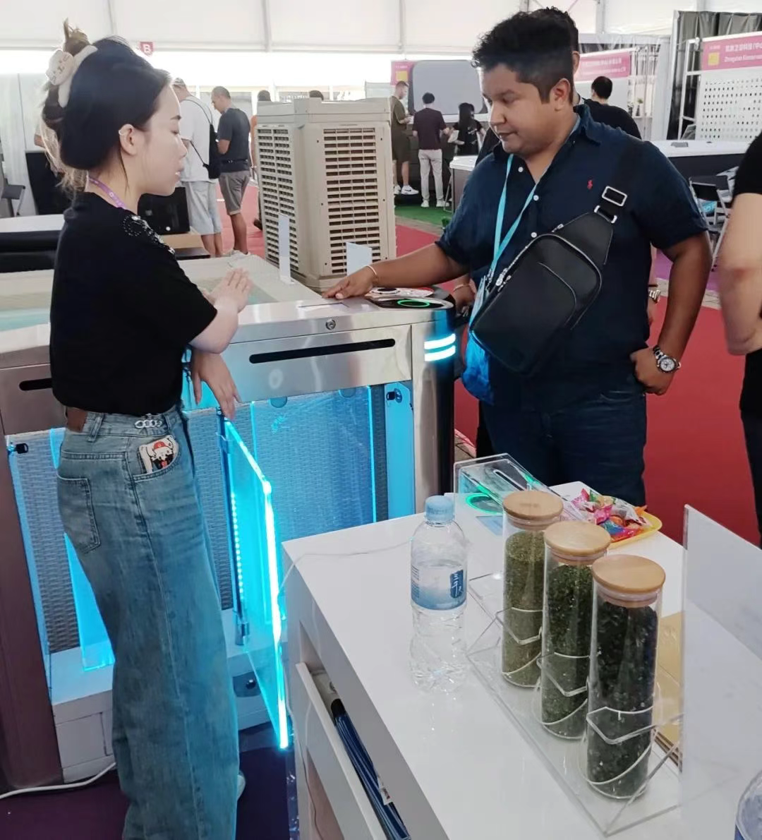 這套智能門禁系統(tǒng)通過高精度生物識(shí)別技術(shù),實(shí)現(xiàn) ﹤1 秒快速識(shí)別,僅需輕輕一掃手掌,即可無(wú)感通行。“Oh, it's quite interesting.”現(xiàn)場(chǎng)眾多境外采購(gòu)商好奇地反復(fù)嘗試,對(duì)其穩(wěn)定性與便捷性贊不絕口。