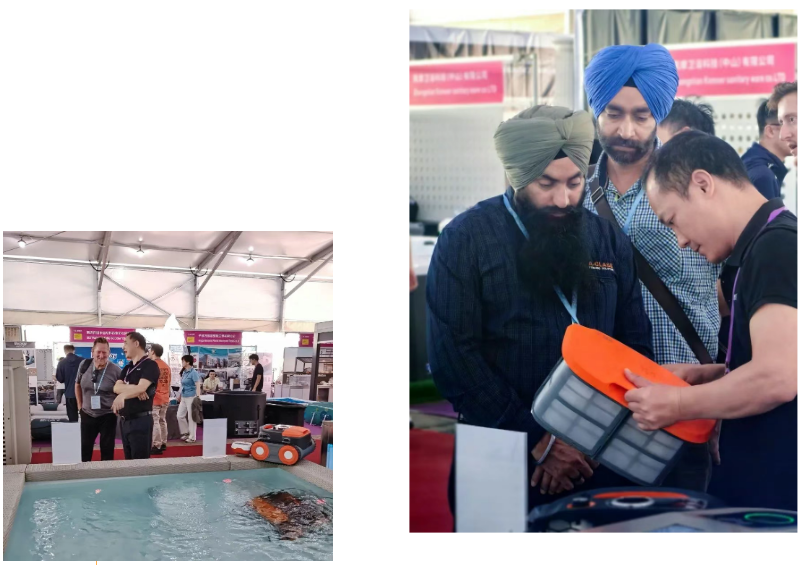 “Wow your pool is pretty good!”藝術(shù)SPA區(qū)域驚嘆聲此起彼伏。期間,戴思樂®智能無(wú)線泳池清潔機(jī)器人上演了一場(chǎng)極具科技張力的“清潔秀”。它憑借“7核探測(cè)+動(dòng)態(tài)修正”智能導(dǎo)航系統(tǒng),真正實(shí)現(xiàn)無(wú)死角清潔,并在藝術(shù)SPA池壁上輕松完成“爬墻”、“爬坡”等高難度動(dòng)作。