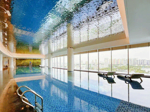 該室內(nèi)透明懸空泳池搭載了“逐夢深藍(lán)®低氯水處理技術(shù)”和“普派克®恒溫恒濕系統(tǒng)”兩大核心技術(shù),確保了泳池水質(zhì)的潔凈與健康,同時維持了室內(nèi)空氣的宜人與清新。