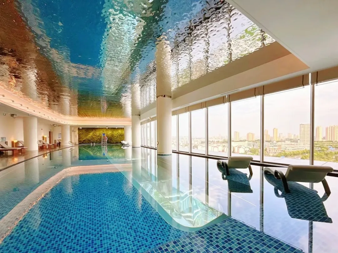 “抬頭仰望是天空,低頭俯瞰皆是江南美景”。說到這座高達(dá)43.95米的透明懸空泳池,它擁有整個酒店巨佳的觀景視角。