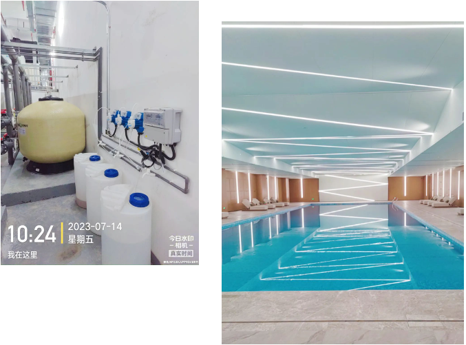 無論是在設(shè)計、建造,還是營運管理,該泳池項目始終將“安全與健康”貫穿兌現(xiàn)的全過程。其中,我們非常關(guān)注泳池水質(zhì)、水溫和空氣質(zhì)量等方面對人體的影響,通過運用逐夢深藍(lán)®低氯水處理技術(shù)、格拉利®空氣源節(jié)能加熱系統(tǒng),以及普派克®恒溫恒濕系統(tǒng)三大核心技術(shù),實打?qū)嵉貫闃I(yè)主打造出一個安全、健康及舒適的游泳環(huán)境。