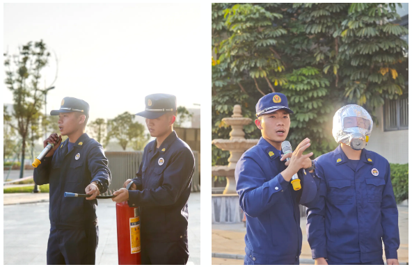演練期間,現(xiàn)場演示講解了防煙面罩的正確佩戴技巧,以及滅火器的正確使用方法。依照“提、拔、握、壓”四字口訣,園區(qū)各部門員工依次進行了滅火器實操,進一步提高了掌握消防器材使用要領(lǐng)的能力。